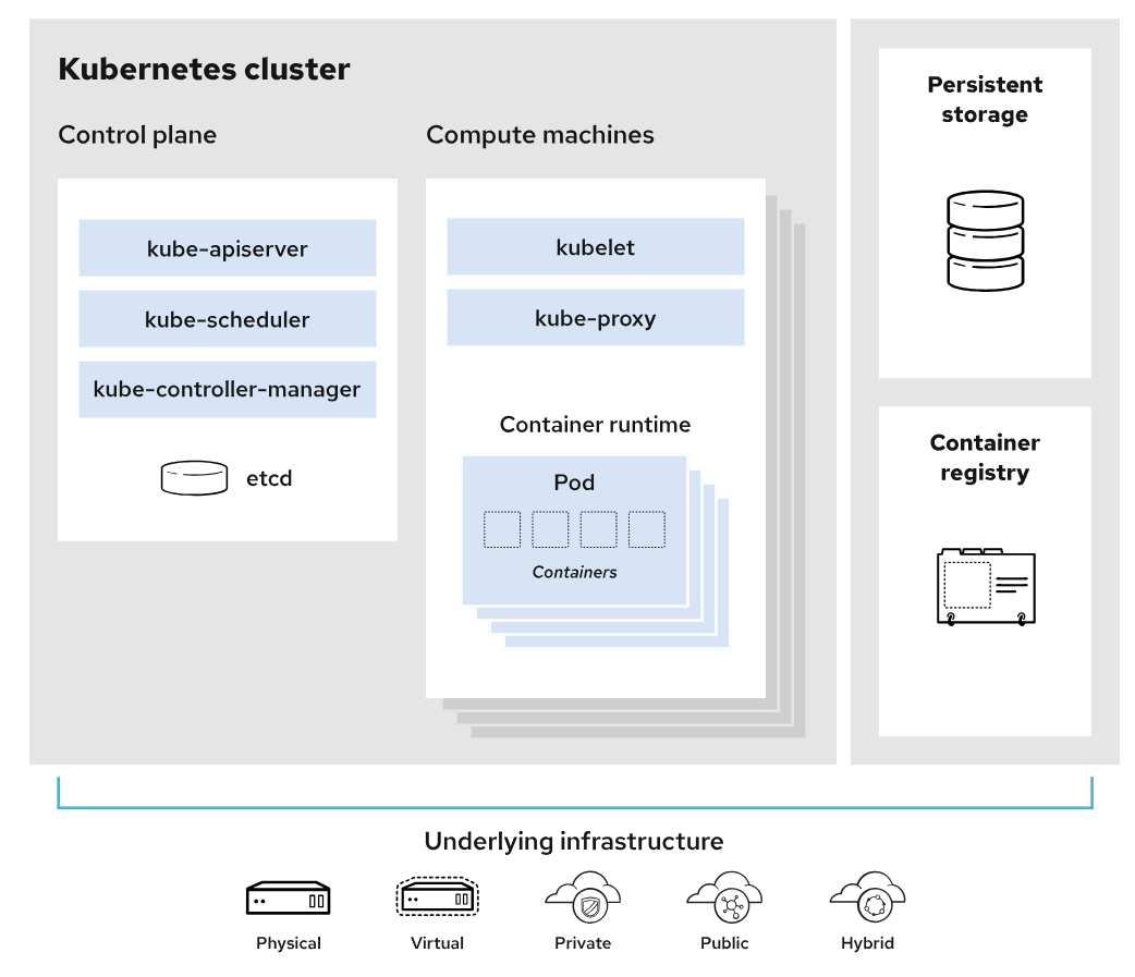 - μλ μ€μΈ μΏ λ²λ€ν°μ€ λ°°ν¬λ₯Ό 'ν΄λ¬μ€ν°'λΌκ³ νλ€. μΏ λ²λ€ν°μ€ ν΄λ¬μ€ν°λ λ λΆλΆμΈ Control planeκ³Ό Compute machines(λλ λ Έλ)λ‘ μκ°νν μ μλ€.