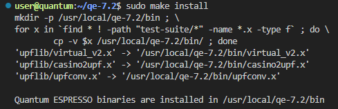 $ sudo cp *.x /usr/local/qe-7.2/bin