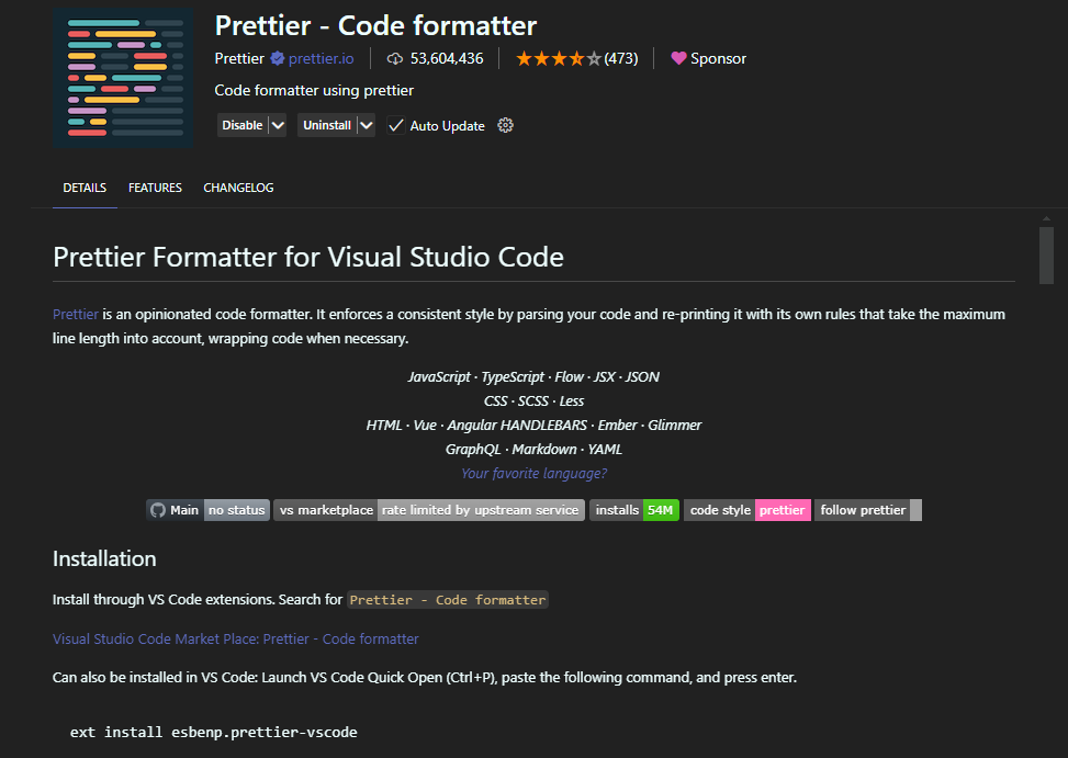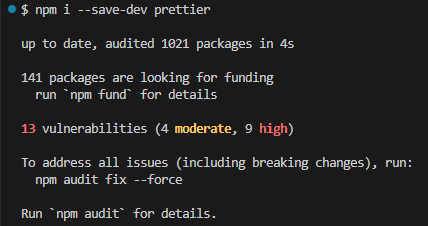 $ npm install --save-dev --save-exact prettier