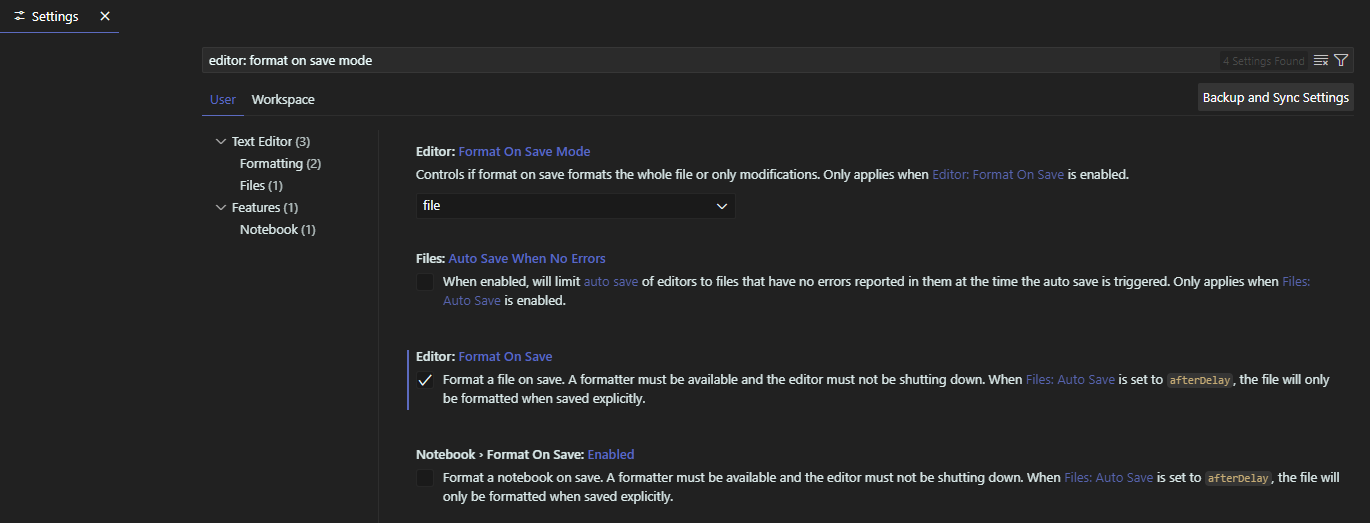ํ์ผ ์ ์ฅ ์์๋ ์๋์ผ๋ก ์ ๋ ฌ์ด ๋๋๋ก editor: format on save mode๋ฅผ ๊ฒ์ํ ๋ค ์ถ๊ฐ๋ก ์ค์ ํด ์ค๋ค.