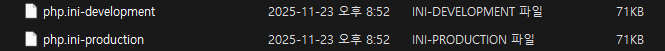 php.ini ํ์ผ์ด ์๋ ๊ฒฝ์ฐ, ์๋์ ๊ฐ์ด ini ํ์ผ์ ๋ฐฑ์ ๋ณธ(?)์ด ์์ํ ๋ฐ ์ด๊ฑธ ๋ณต์ฌํด์ ์ฌ์ฉํ๋ฉด ๋จ.