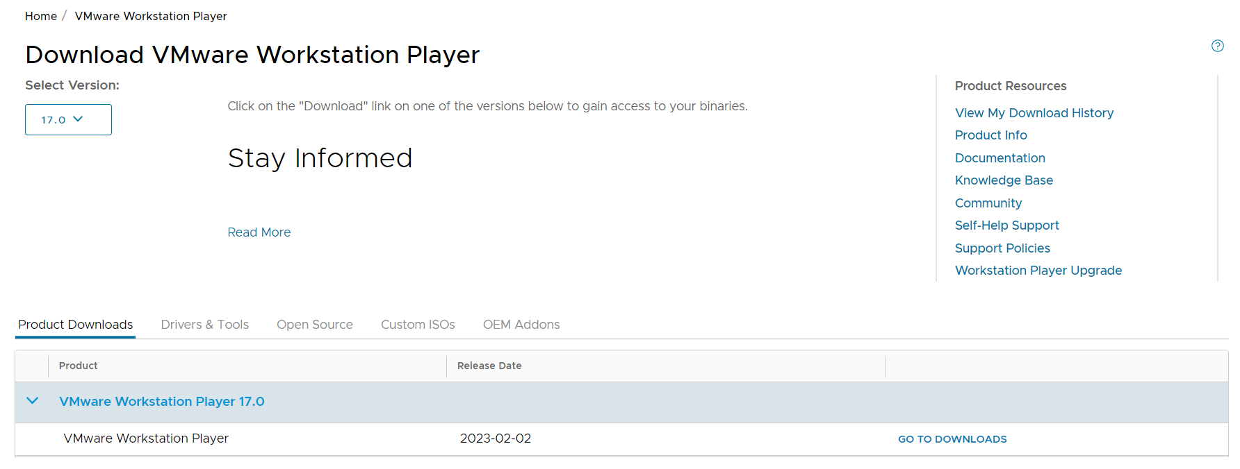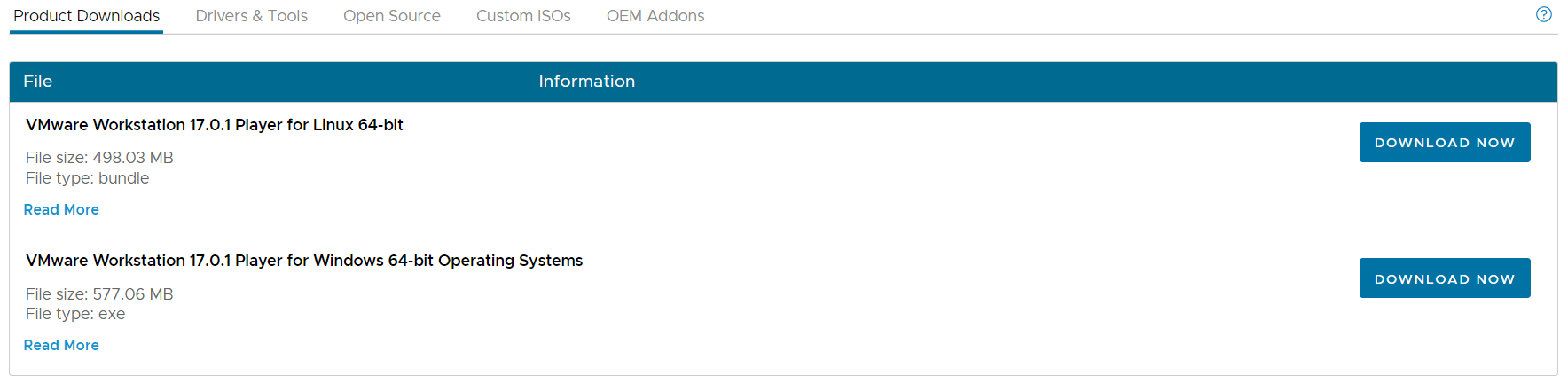 - VMware Workstation 17 Player : https://www.vmware.com/products/workstation-player.html