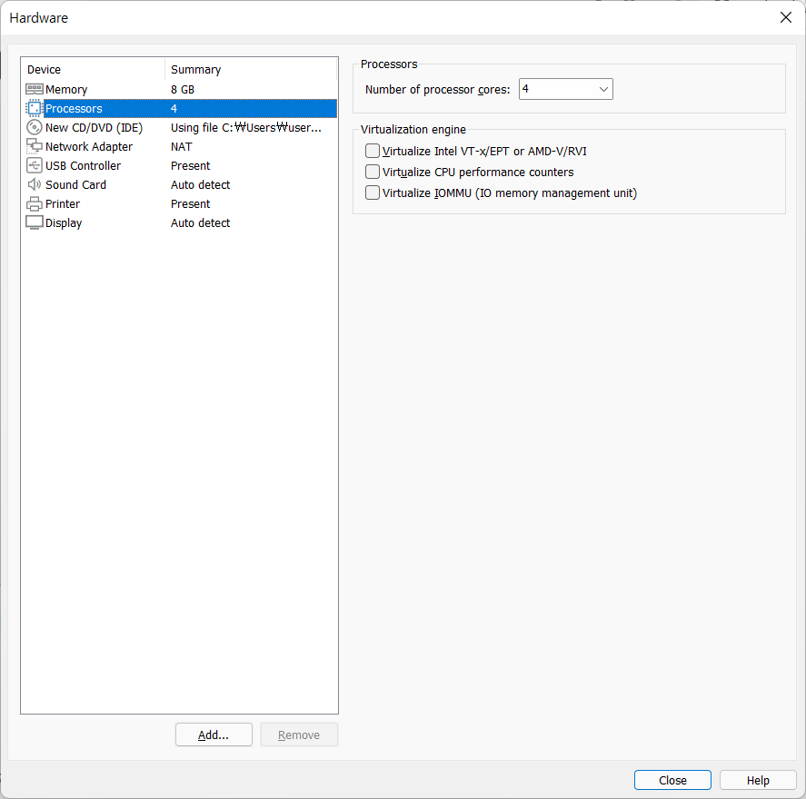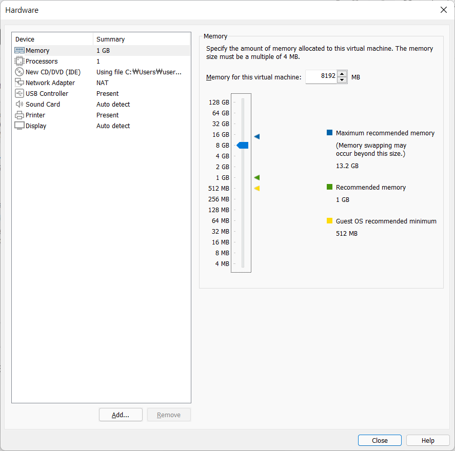 Customize Hardware... ๋ฒํผ์ ํด๋ฆญํ๋ฉด ๋์ค๋ ํ๋์จ์ด ์ค์ ์์๋