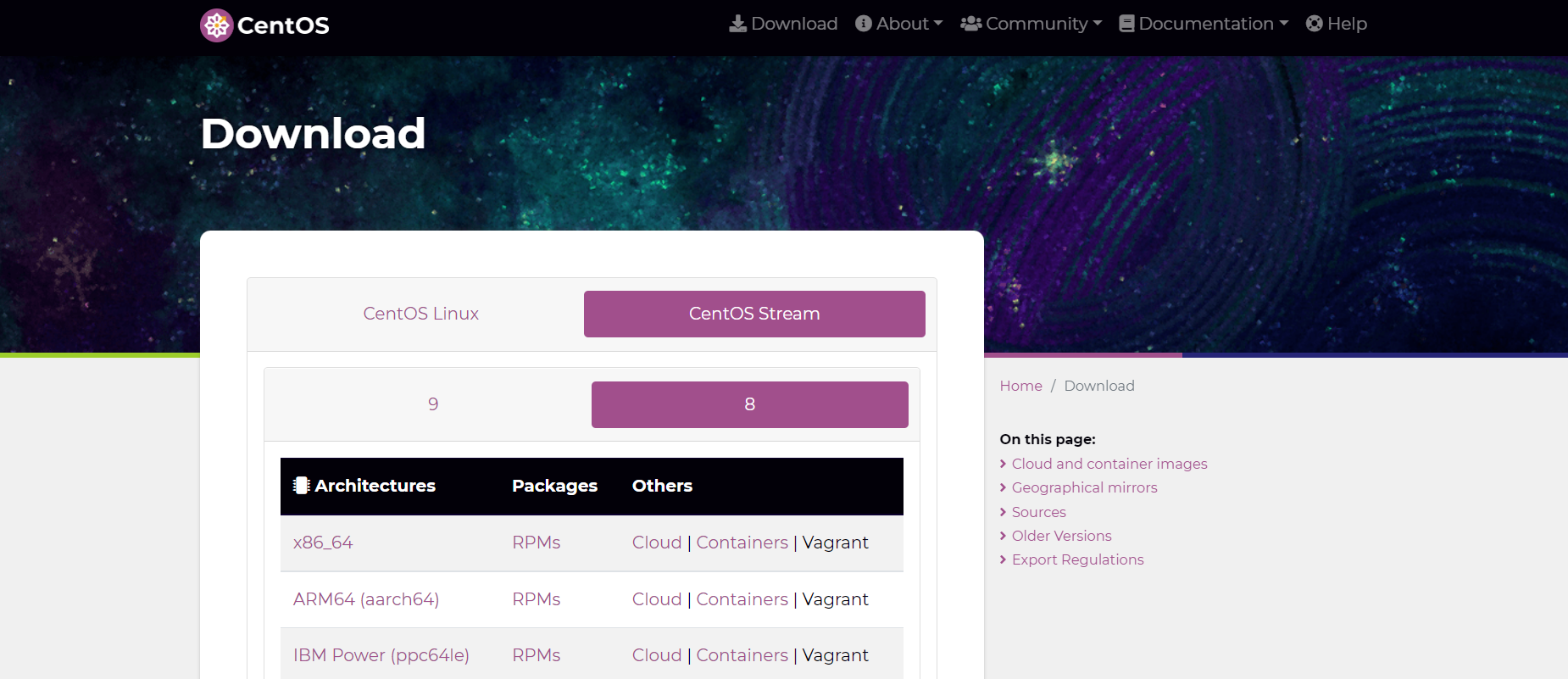 Home Download Architectures Packages Others x86_64 RPMs Cloud | Containers | Vagrant ARM64 (aarch64) RPMs Cloud | Containers | Vagrant IBM Power BE (ppc64) RPMs Cloud | Containers | Vagrant IBM Power (ppc64le) RPMs Cloud | Containers | Vagrant ARM32 (armhf