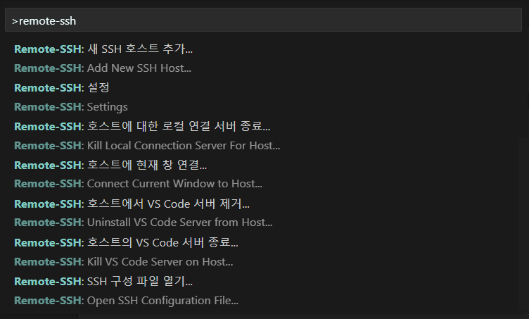 F1 → Remote ๊ฒ์ ํ Remote-SSH: Connect to Host... ํด๋ฆญ!