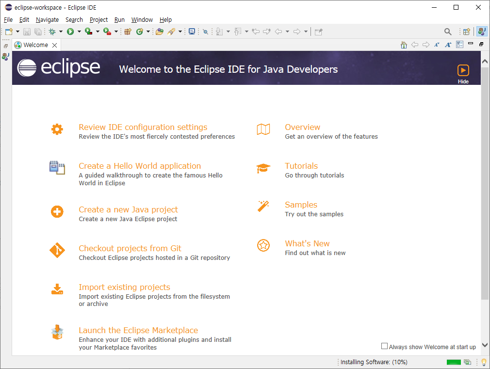 - Eclipse ๋ค์ด๋ก๋ ๊ณต์ ํํ์ด์ง : https://www.eclipse.org/downloads/